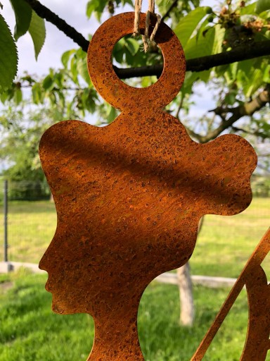 Dekoracja z biegiem czasu będzie nabierać pięknej rudości, my przedstawiamy elementy wycięty z świeżej blachy która dopiero zaczyna zachodzić rdzą.
