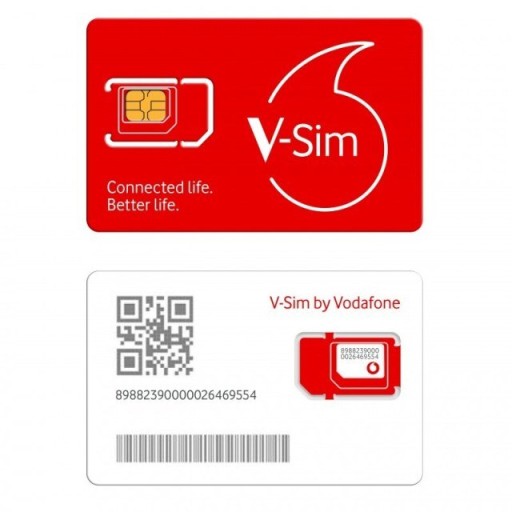 - V-Sim to czysta karta SIM, która łączy szereg urządzeń, w tym smartwatches, urządzenia Smart Home, śledzenie GPS i aparaty inteligentne, z siecią Vodafone