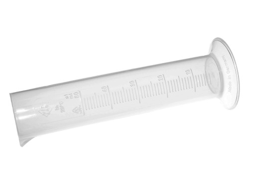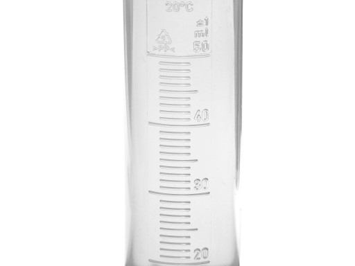 Oferujemy: Menzurka kolor mleczny, pojemnik, naczynie miarowe do odmierzania chemii, 50 ml. - z podstawką, dokładne