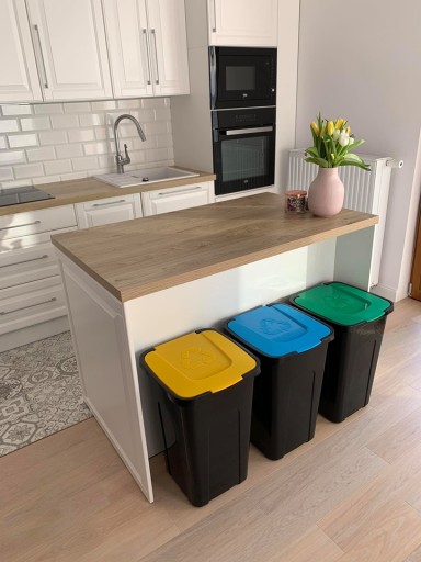 Pojemnik wykonanych jest z wysokiej jakości tworzywa sztucznego. Świetnie sprawdza się w każdym domu i biurze, w których przykłada się uwagę do codziennej segregacji odpadów. Odpowiednia kolorystyka bliska ogólnie przyjętym oznaczeniom pozwoli łatwo dopasować rodzaj wyrzucanych odpadów do poszczególnych pojemników. Uchylna pokrywa zapobiega wydostawaniu się przykrych zapachów na zewnątrz kosza. Idealne do posortowania zanieczyszczeń na plastik, papier i szkło.