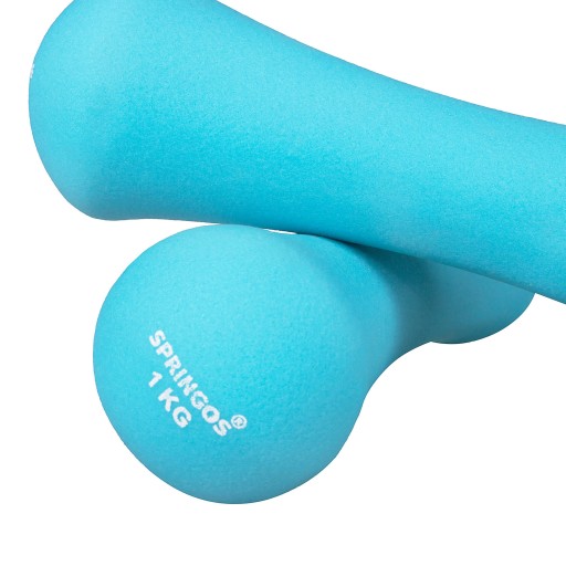 Zestaw hantelków od firmy Springos® są prostym sprzętem do domowych treningów. Dzięki nim można wzmocnić oraz ujędrnić mięśnie rąk i ramion. Doskonale sprawdzą się podczas aerobiku, ćwiczeń siłowych czy w trakcie rehabilitacji, a specjalnie dobrany ich kształt gwarantuje pewny chwyt.