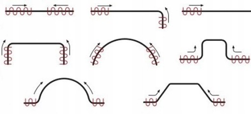 ▶ Istnieje możliwość gięcia wewnętrznego jak i zewnętrznego zgodnie ze schematami.