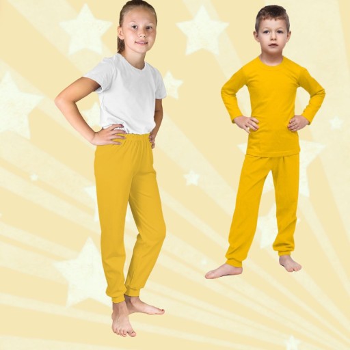 SPODNIE DRESOWE DZIECIĘCE 128 BAWEŁNIANE GŁADKIE ŻÓŁTE CHŁOPIĘCE DZIEWCZĘCE