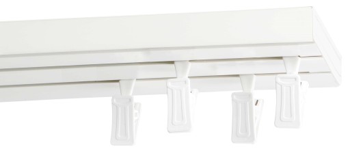 - Szerokość szyny i rozmieszczenie torów zapobiega nachodzeniu zasłon na siebie, zapewniając płynne przesuwanie zasłon