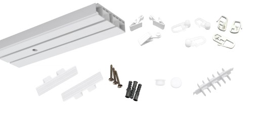 - 2 torowa szyna w kolorze białym o długości 460 cm (2x 230cm). Karnisze o długości do 250 cm dostarczamy w całości, a powyżej 250 cm w dwóch równych częściach