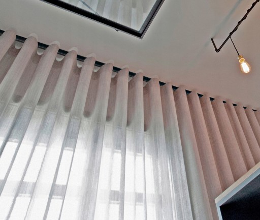 ▶ Pod określony kształt nadaje niezwykłych możliwości. Bezkolizyjne przesuwanie zasłon lub firan po szynie daje nam możliwość stworzenia miejsc magazynowania tkanin – nie tam, gdzie kończy się karnisz.