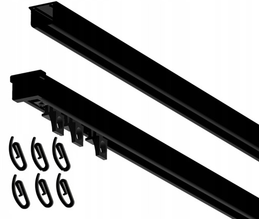 Przedmiotem tej aukcji jest komplet karnisza sufitowego szynowego jednotorowego, systemu MS w kolorze czarnym o długości 240cm.