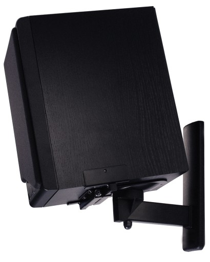 Uchwyt ścienny BT77 ma wyściełaną, regulowaną konstrukcję z mocowaniem bocznym, która pozwala zamontować głośniki bez użycia śrub.