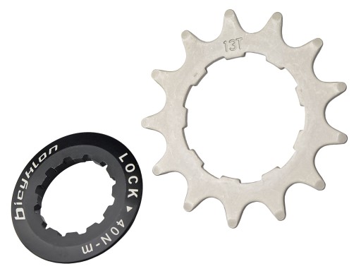 W komplecie zębatka 13T, 7 aluminiowych podkładek i nakrętka.
