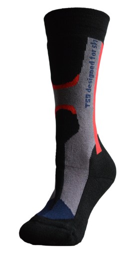 Podkolanówki narciarskie TS9 z wełny mieszanej z akrylem i dodatkowego włókna elastanowego z płaskim szwem i podwójnym ściągaczem.