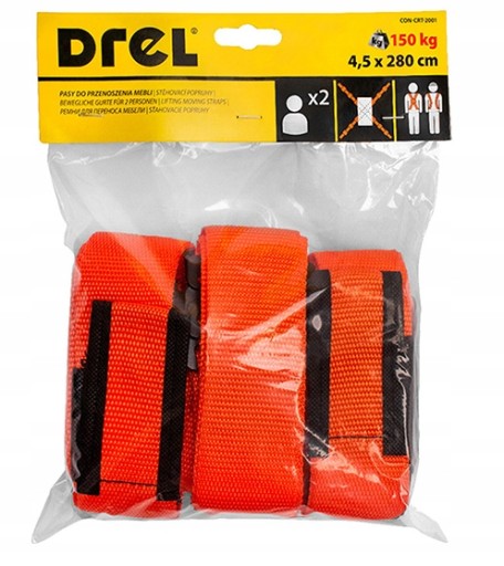 Pasy przeznaczone są do przenoszenia mebli lub innych ciężkich przedmiotów - zestaw dla dwóch osób.