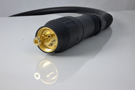 Uchwyt zakończony jest znormalizowanym przyłączem typu EURO, pasującym do większości półautomatów spawalniczych.