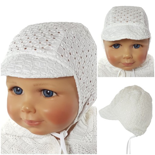NIEMOWLĘCA, UNIWERSALNA, DELIKATNA CZAPECZKA Z DASZKIEM I REGULACJĄ TASIEMKĄ, DZIĘKI CZEMU ROŚNIE Z DZIECKIEM I PASUJE OD 0 DO OKOŁO 6 M-CA ŻYCIA. WYKONANA Z WYSOKOGATUNKOWEJ OZDOBNEJ BAWEŁNY Z DZIURECZKAMI. IDEALNIE CHRONI PRZED SŁOŃCEM, ŚWIETNA NA PLAŻĘ, PRZEWIEWNA, A ZARAZEM ŁADNIE ZAKRYWAJĄCA USZKA PRZED WIATREM. IDEALNA DO CHRZTU ORAZ DO RÓŻNYCH INNYCH STYLIZACJI. TEN MODEL W WERSJI BAWEŁNIANEJ W RÓŻNYCH WZORACH NA KOLEJNYCH NASZYCH AUKCJACH. NA POZOSTAŁYCH AUKCJACH INNE CZAPECZKI, OPASKI I NAKRYCIA GŁOWY. ZAPRASZAMY DO ZAPOZNANIA SIĘ Z CAŁĄ NASZĄ BOGATĄ OFERTĄ WPROST OD POLSKIEGO PRODUCENTA!!! MY NIM JESTEŚMY!!!