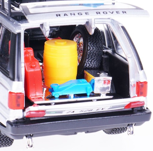 Model Bburago Range Rover (18-22061) w skali 1:24.Model jest wykonany z metalu z plastikowymi dodatkami. Posiada ruchome elementy - drzwi, maska, bagażnik. Model dostępny w kolorze srebrnym.