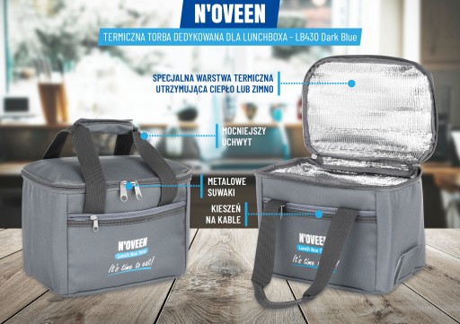 W zestawie znajduje się torba termiczna, która dodatkowo zabezpiecza i podtrzymuję temperaturę posiłku. Torba posiada dodatkowe miejsce na napój lub owoce.