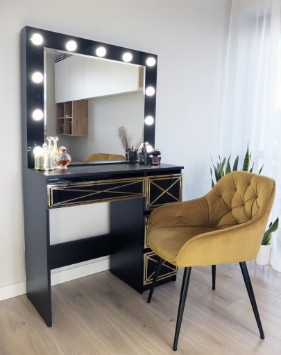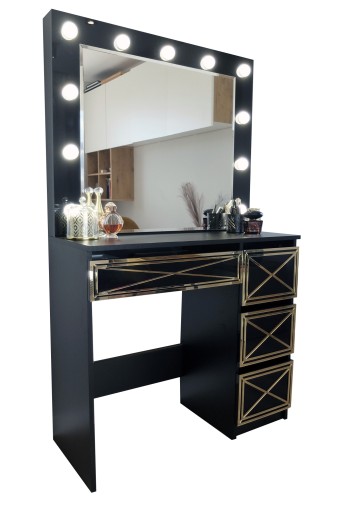 Toaletka wykonana jest z CZARNEJ płyty laminowanej. Front lustra oraz szuflady - płyta połysk.