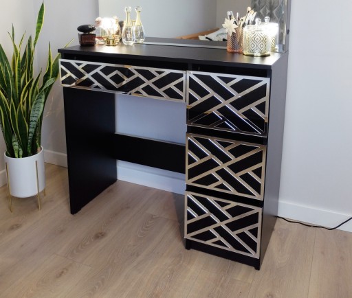 TOALETKA podsiada lustrzany dekor na froncie szuflady.