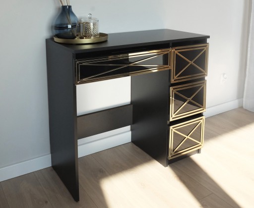 Biurko wyposażone jest w 4 bardzo pojemne szuflady, do których zmieścisz również wyższe kosmetyki.