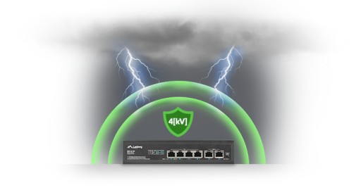 Mając na uwadze bezpieczeństwo urządzeń, jak i ich użytkowników, Lanberg wyposażył przełącznik w zintegrowany układ ochronny przeciw wyładowaniom, gwarantujący zabezpieczenie 4 kV wszystkim portom, skutecznie zmniejszając ich uszkodzenia z powodu gwałtownego wzrostu napięcia.