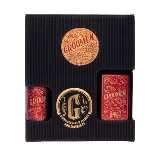 Zestaw do brody z olejkiem, balsamem i szamponem w papierowym opakowaniu Groomen