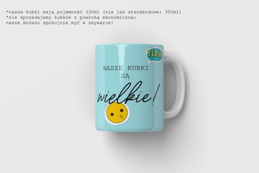 - Rozmiarem! Pojemność 330ml przekłada się na zauważalnie większy rozmiar kubeczka w porównaniu do standardowych 300ml.