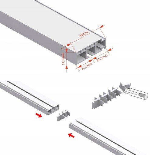 - Konstrukcja szyny jest prosta, klasyczna, sprawdzona przez tysiące klientów, co gwarantuje lekkość oraz łatwy i stabilny montaż