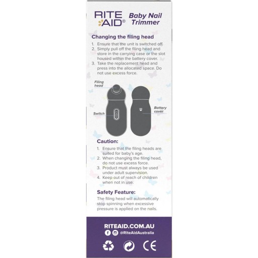 - Trymer do paznokci Rite Aid Baby jest przeznaczony do miękkich paznokci dziecka. Posiada dedykowane pilniczki z podziałem na wiek.