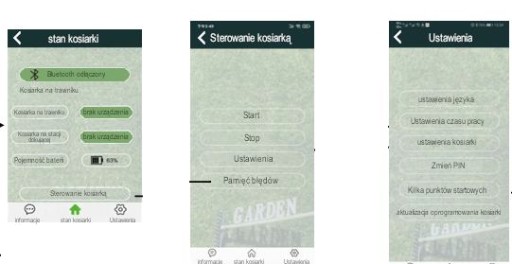 Dzięki modułowi Bluetooth kosiarka automatyczna może być połączona bezpośrednio z telefonem komórkowym za pośrednictwem aplikacji. Za pomocą aplikacji można ustawić indywidualne ustawienia pracy robota, m.in. dni pracy i godziny pracy oraz obszary do koszenia.