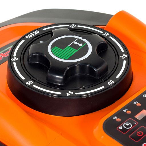 Regulacja wysokości koszenia jest możliwa za pomocą pokrętła umieszczonego na górnej obudowie. Zakres regulacji wysokości 20-60 mm.