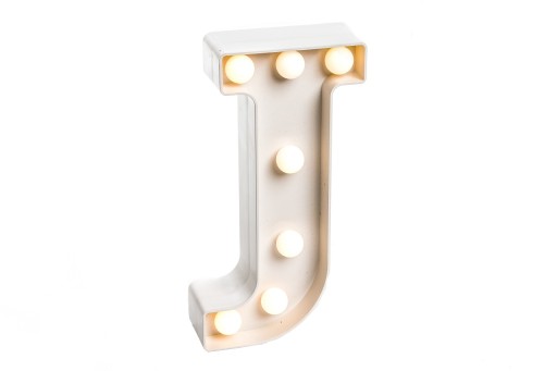 Unikalna lampka biała w kształcie litery „J”.