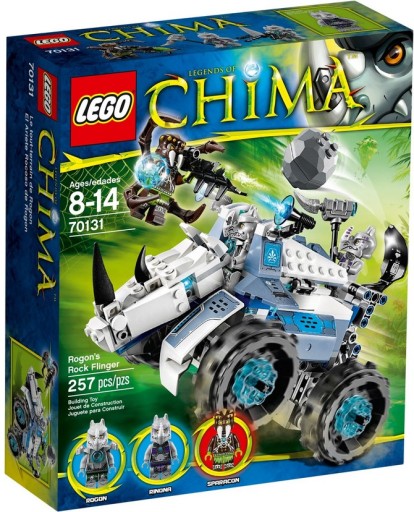 Rogon i Rinona wyruszyli na patrol i szukają sześcionogiego Sparacona, który ukradł należące do nich CHI. Naciśnij ogon Miotacza Skał, aby wejść w tryb pościgu, i popędź przez krainę Chima. Kiedy zauważysz Sparacona, uruchom katapultę, aby zablokować mu drogę ucieczki wielkim głazem. Zmierz się w walce naziemnej ze Sparaconem i jego miotaczem zamocowanym w Pajęczym Korpusie. Wykorzystaj 5-lufowy Miotacz Głazów oraz Rogowy Młot, aby odzyskać bezcenne CHI należące do plemienia nosorożców! Zestaw zawiera 3 minifigurki z bronią: Rogona, Rinonę i Sparacona.