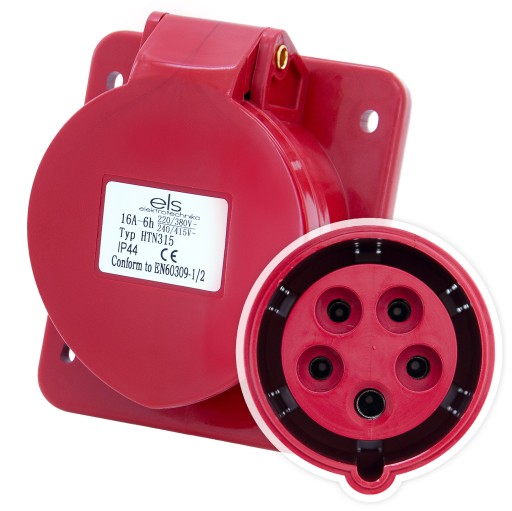 ✅ 1 x gniazdo siłowe skośne z niklowanymi stykami 16A 5P 400V IP44 i zabezpieczone C16 3P.