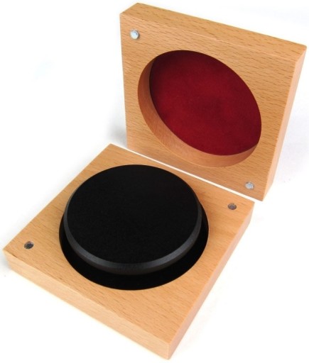 Stabilizator Record Puck, docisk płyty analogowej - typowy grawitacyjny stabilizator o dość pokaźnej masie.