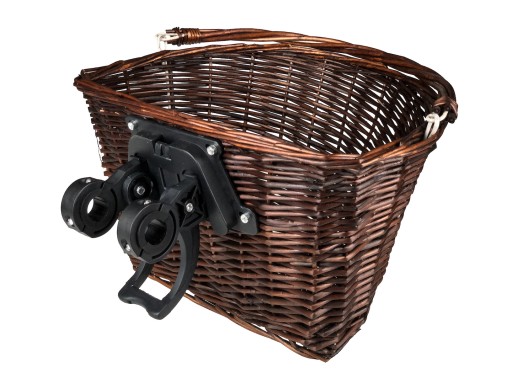 Montaż: do kierownicy na stałe montuje się uchwyt, do którego za pomocą przycisku przypinamy lub odpinamy koszyk.
