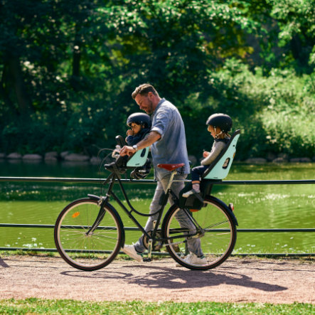 Lekki i stylowy fotelik rowerowy montowany z przodu, o niebanalnym wyglądzie, zaprojektowany z myślą o wycieczkach po mieście.