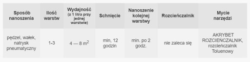 w temperaturze 20C wynosi 2 godz., po tym czasie można przystąpić do nakładania kolejnych warstw.