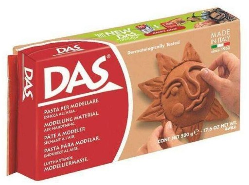 Samoutwardzalna (bez potrzeby wypalania) glinka modelarska. Czas schnięcia 24h na 1cm. Łatwa w formowaniu. Może być używana wraz z drewnem, kartonem czy terakotą. Można użyć farb i lakieru do dekoracji gotowej rzeźby. Obiekty wykonane z glinki Das są solidne i trwałe.