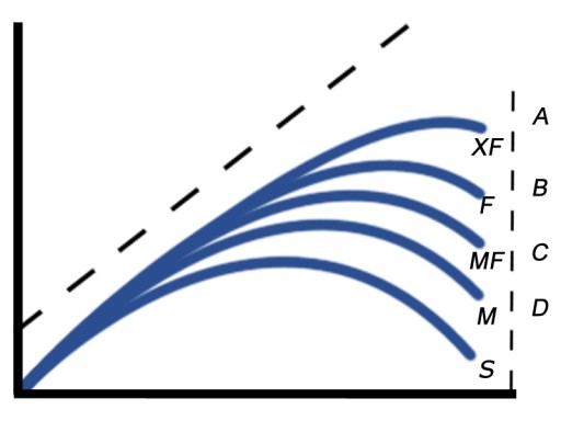 Karpiówki C-Series Carp AB Prologica to progresywne wędziska pół-paraboliczne (na wykresie D) oraz szybkie (na wykresie F).