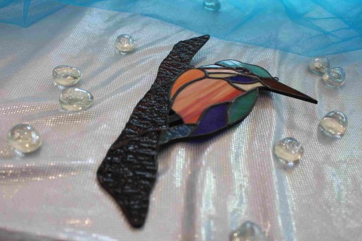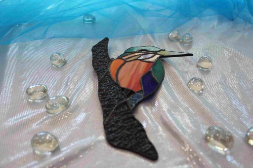 Zimorodek z witrażowego szkła wykonany w 100% ręcznie i w 100% w Polsce przez polskich rzemieśników