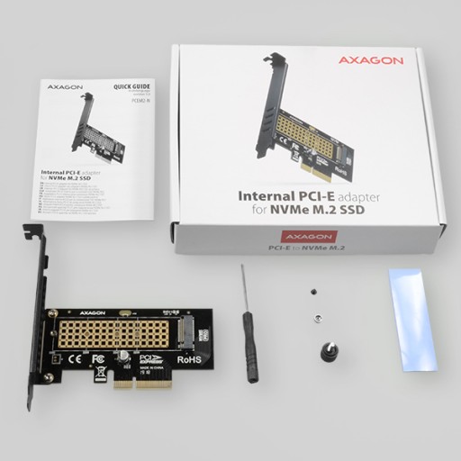 Adapter wewnętrzny AXAGON PCEM2-N umożliwia przyłączenie dysku SSD ze złączem M.2 do komputera stacjonarnego przy pomocy magistrali PCI-Express.