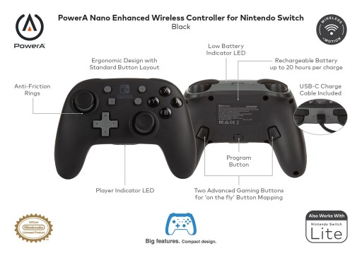 Ten kontroler bezprzewodowy PowerA jest oficjalnie licencjonowany na konsolę Nintendo Switch. Zawsze szukaj tej pieczęci, kupując akcesoria do gier wideo, że produkt przeszedł rygorystyczny proces testowania i oceny przez Nintendo. Produkty, które nie mają tej pieczęci, mogą w ogóle nie działać z twoją konsolą Nintendo lub mogą mieć problemy ze zgodnością z niektórymi grami.