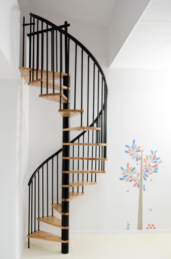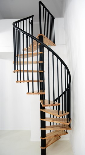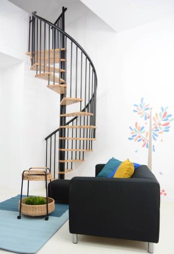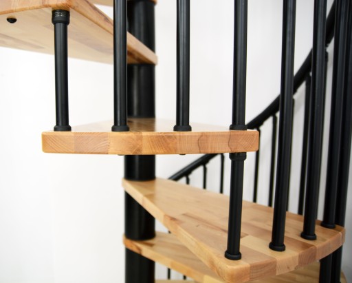 Schody spiralne SPIRAL EFECT BLACK z bukowymi stopniami.