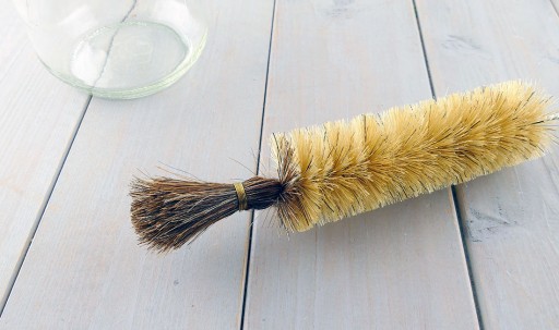 Szczotka posiada na końcu "pędzelek" z włosia, który gwarantuje dokładne umycie dna butelki