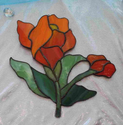 Witrażowy kwiat wykonany jest w 100% w Polsce w 100% ręcznie przez polskich rzemieślników.