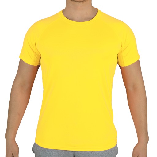 - Koszulka techniczna z krótkim reglanowym rękawem i okrągłym kołnierzykiem.