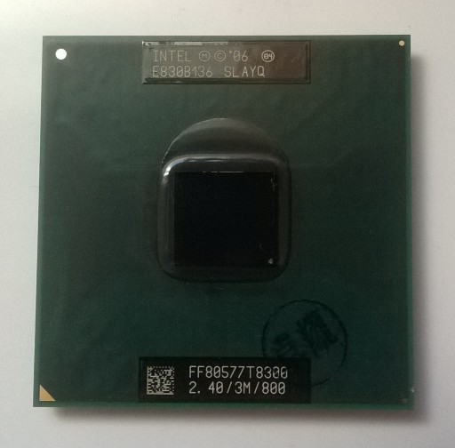- Procesor Intel Core 2 Duo T8300, 2,4 GHz, FSB 800Mhz, w 100% sprawny, przetestowany. Nóżki nie powyginane, przed wysłaniem włożony do socketu, aby upewnić się, że wchodzi bez problemu.