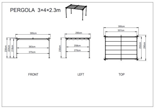 Pergola Ogrodowa to doskonały produkt dla każdego kto posiada ogród i lubi spędzać czas na świeżym powietrzu. Podczas słonecznej pogody ochroni Cię przed słońcem, a w razie złej pogody przed deszczem. Składanie całości zajmuje tylko 30 min. Stelaż wykonany z materiałów antykorozyjnych.