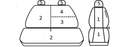 Zestawienie elementów: -pokrowce przednie 6szt -zagłówki przednie 3szt Fotel pojedynczy-1szt; fotel podwójny-1szt; fotel podwójny oparcie dzielone 1/2; składane; pasy z siedziska i oparcia; regulacja lędzwiowa; zagłówki 3 szt; zakres 2015-...