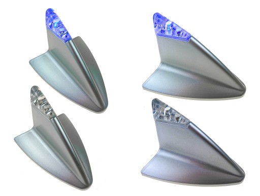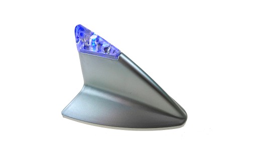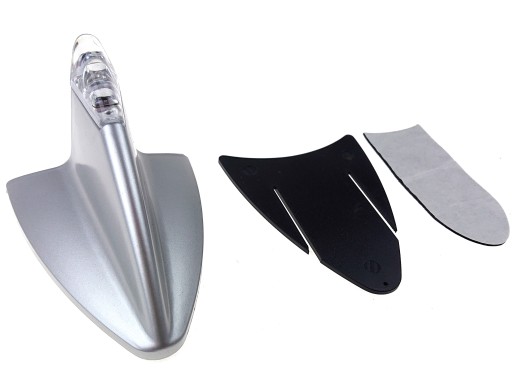 Srebrna imitacja anteny - rekin ze świecącą końcówką. Znana jest ona np. z designu aut marki BMW, doskonale sprawdzi się jako imitacja takiego rozwiązania lub jako imitacja anteny GPS.