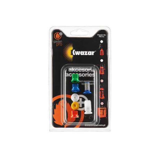 Zestaw zawiera 6 dysz o różnym wydatku cieczy, filtr końcówki lancy oraz filtr cylindryczny zapobiegający zapychaniu się rozpylacza. Wybór dysz pozwala na dobór rozpylacza w zależności od potrzeb użytkownika, rodzaju zabiegu i używanego środka chemicznego.